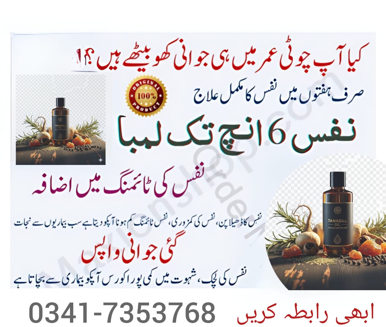 Experience the power of nature with Tanasil Oil — a premium herbal formula crafted for men’s health and energy. This oil penetrates deep into the skin to nourish tissues, enhance timing, and strengthen nerves. Regular massage helps improve circulation, reduce weakness, and restore lost confidence.
